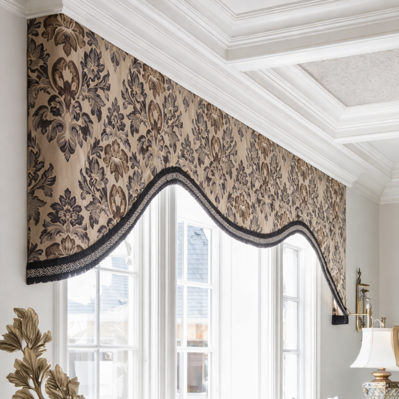 Delivering a more refined look than soft drapery alone, custom window cornices bring architectural interest to any space. A cornice is an attractive, box-like wooden valance mounted to the wall just above your windows. They draw the eye upward, like a window swag or scarf, adding character to the room and a more polished touch to the design.